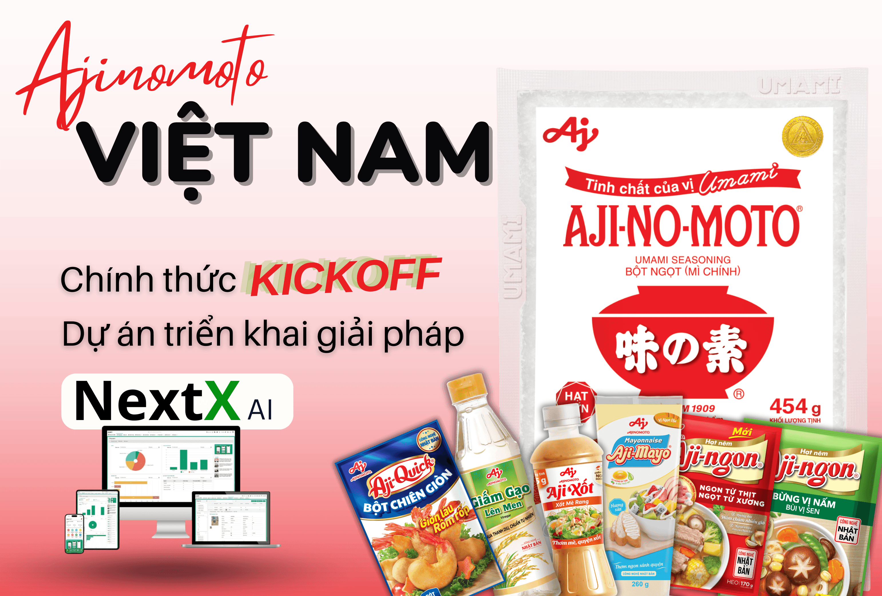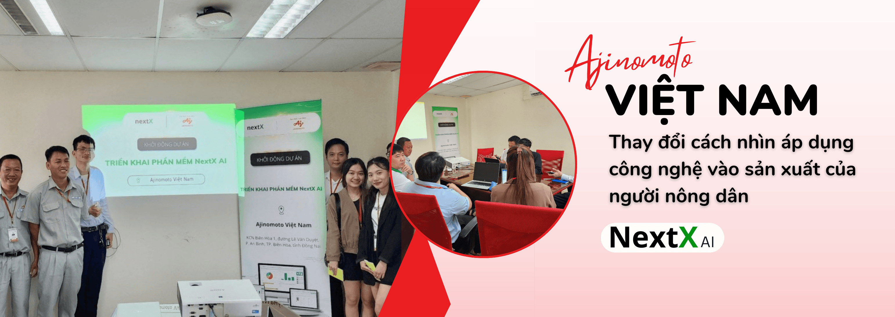 Ngoài những sản phẩm đó, Ajinomoto còn có một trang trại sản xuất nông nghiệp riêng để đưa được những sản phẩm chất lượng đến tay người tiêu dùng. Ajinomoto Việt Nam cũng như bao doanh nghiệp khác, đều mong muốn tối ưu hóa được quy trình làm việc và tối ưu hóa được được chi phí bằng cách sử dụng những công nghệ tiên tiến. Cùng với cơ duyên và ý tưởng về công nghệ đó, Ajinomoto Việt Nam đã lựa chọn giải pháp NextX AI để nâng cao hiệu quả sản xuất nông nghiệp và chất lượng sản phẩm. Và buổi kickoff chính thức của dự án giải pháp NextX AI cho Ajinomoto được tổ chức công ty KCN Biên Hòa 1, đường Lê Văn Duyệt, P. An Bình, TP. Biên Hòa, tỉnh Đồng Nai.