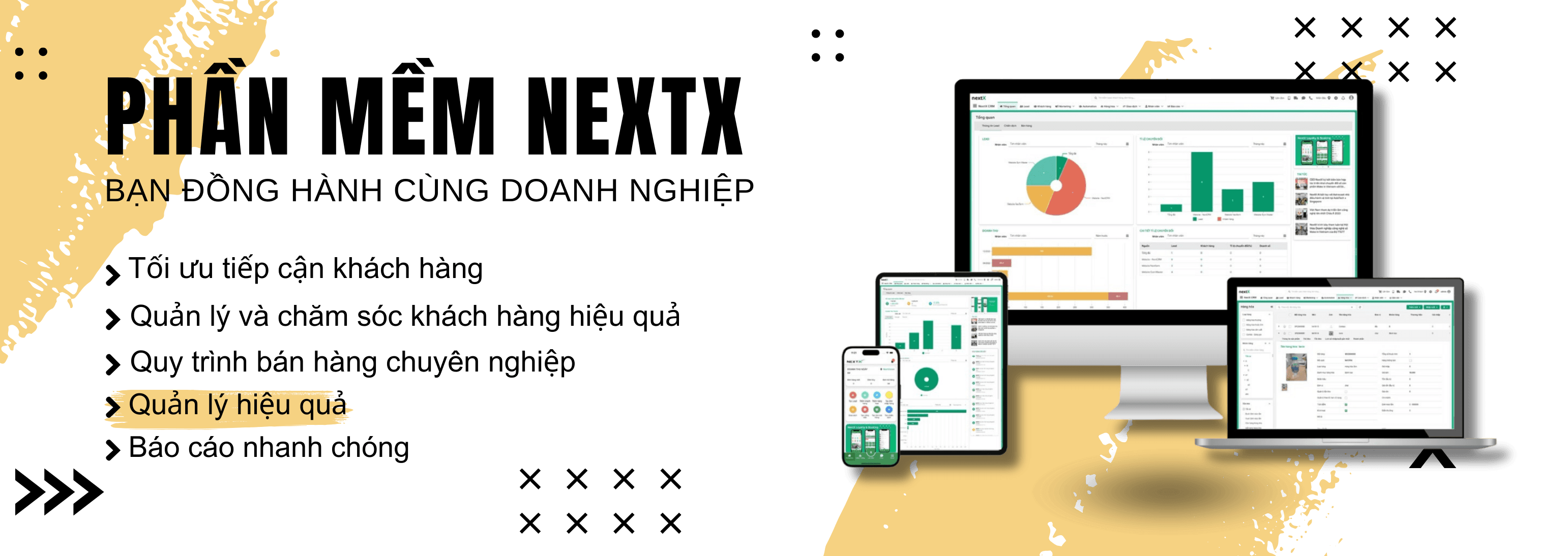 NextX là nền tảng phần mềm CRM toàn diện nhất dành cho việc chăm sóc và quản lý khách hàng hiện nay. Với hơn 3.000 khách hàng trên toàn quốc, hệ thống con đa dạng nhất thị trường, hệ thống chức năng All-in-One giúp giải quyết được hầu hết các vấn đề doanh nghiệp gặp phải.